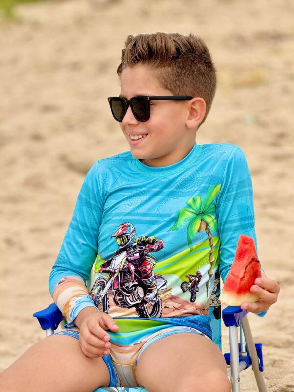 O Conjunto UV Ricco Moto é a escolha ideal para meninos que querem curtir o sol com segurança e muito estilo. Produzido com tecido premium e proteção UV 50+ , oferece conforto e durabilidade, protegendo a pele dos raios solares de maneira eficaz.