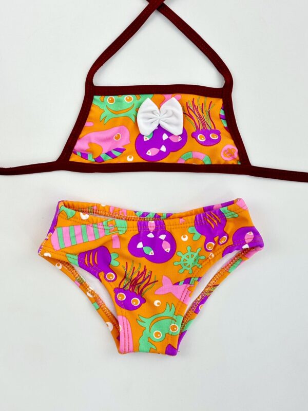 - Design Divertido: Estampado com motivos incríveis do fundo do mar, este biquíni traz cores vibrantes e personagens adoráveis, encantando tanto os pequenos quanto os papais.