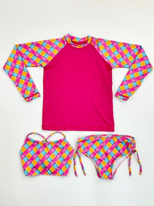 - Biquíni 3 peças : Conjunto completo que inclui biquíni e uma camisa UV para proteção total ao se expor ao sol.