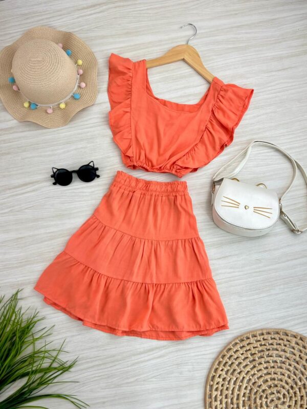 Aposte no Conjunto Cropped Babado Saia para garantir estilo, leveza e conforto em qualquer situação!