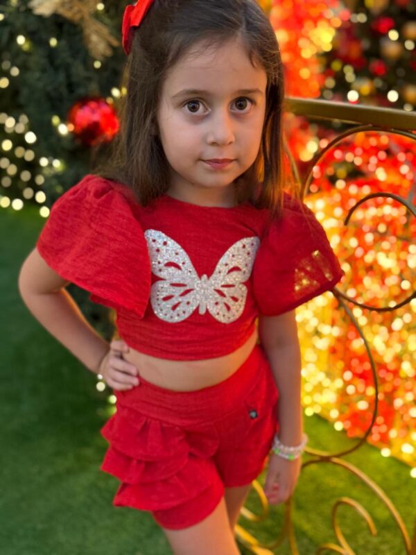 Com o Conjunto Short Borboleta, sua menina terá um visual encantador e estiloso para qualquer ocasião!