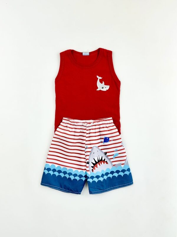 O Conjunto Masculino Tubarãozinho é a escolha ideal para meninos que buscam conforto e estilo no dia a dia. Composto por um calção de tactel leve e prático, e uma camisa de algodão macio, esse conjunto é perfeito para atividades ao ar livre, passeios ou momentos de lazer.