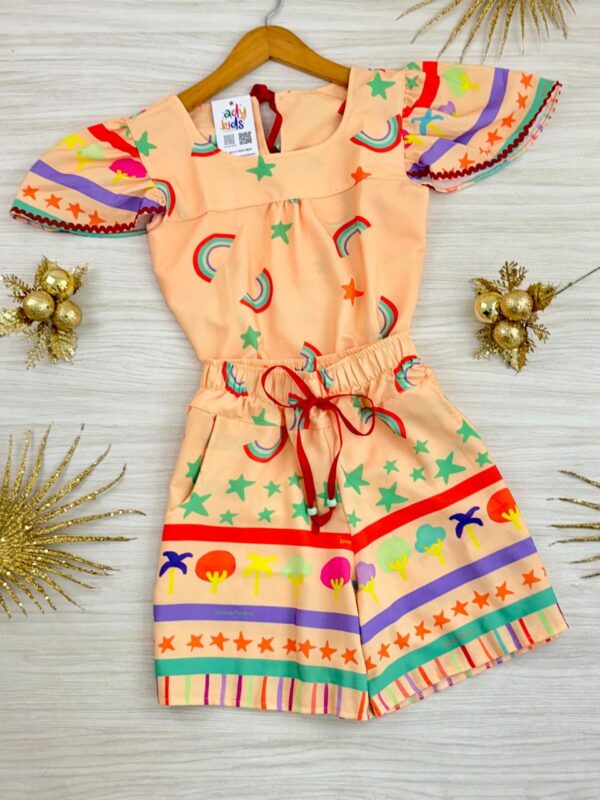 O Conjunto Turma Short é perfeito para meninas que buscam conforto e charme. Composto por um short leve e uma blusa com estampa, esse conjunto é ideal para momentos especiais e dias de diversão.