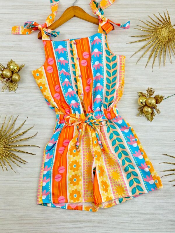 O Macaquinho Turma é perfeito para meninas que oferecem praticidade e estilo. Com estampa moderna e detalhes específicos, como alças elegantes por amarração , elástico na cintura e bolsos práticos , ele proporciona conforto e um visual descolado para qualquer ocasião.