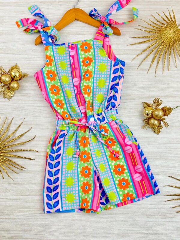 Macaquinho Turma é perfeito para meninas que oferecem praticidade e estilo. Com estampa moderna e detalhes específicos, como alças elegantes por amarração , elástico na cintura e bolsos práticos , ele proporciona conforto e um visual descolado para qualquer ocasião.