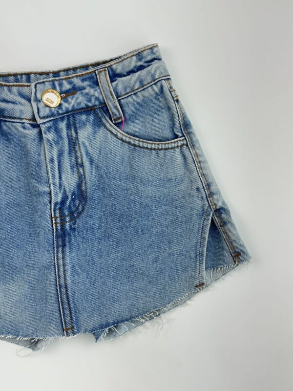 Adicione o Short Saia Jeans – Corte a Laser ao guarda-roupa da sua menina e proporcione um visual moderno, confortável e cheio de charme!