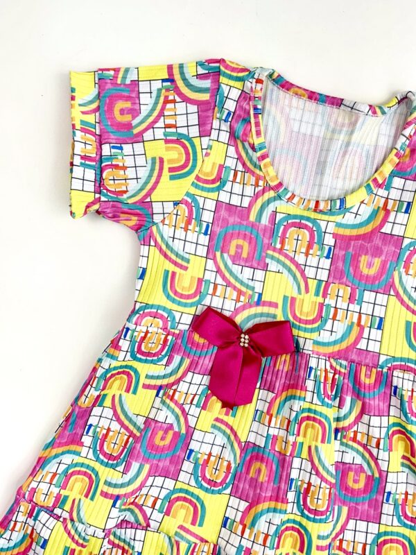 VESTIDO CANELADO MANGA ARCO-ÍRIS